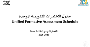 جدول الاختبارات التقويمية الموحدة للصفوف (5-12) مدارس مجمع زايد من الفصل الدراسي الثالث 2025-2026 . تحميل الملف من هنا