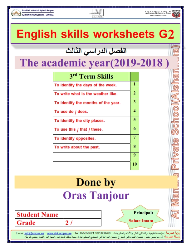اوراق عمل مراجعة لغة انجليزية للصف الثاني الفصل الثالث 2018-2019 عدد الصفحات : 8 صيغة الملف : pdf اوراق عمل مراجعة في اللغة الانجليزية للصف الثاني من الفصل الدراسي الثالث من العام الدراسي 2018/2019م. التحميل من هنا