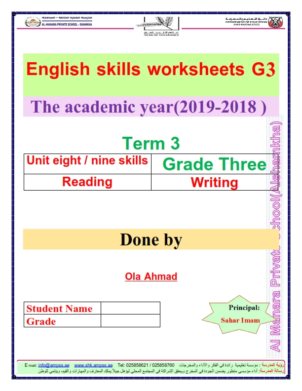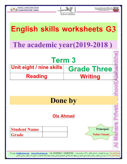 اوراق عمل مذكرة مراجعة لمادة اللغة الانجليزية للصف الثالث من الفصل الثالث ، الملف للمشاهدة والتحميل علي موقع المناهج الاماراتية.