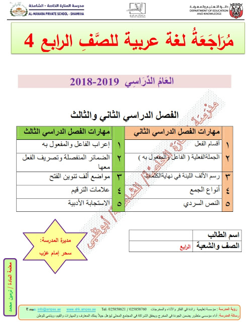 اوراق عمل مراجعة لغة عربية للصف الرابع الفصل الثاني والثالث 2018-2019.9 عدد الصفحات : 9 صيغة الملف : pdf اوراق عمل مراجعة لمادة اللغة العربية للصف الرابع من الفصل الدراسي الثالث من العام الدراسي 2018/2019م. التحميل من هنا