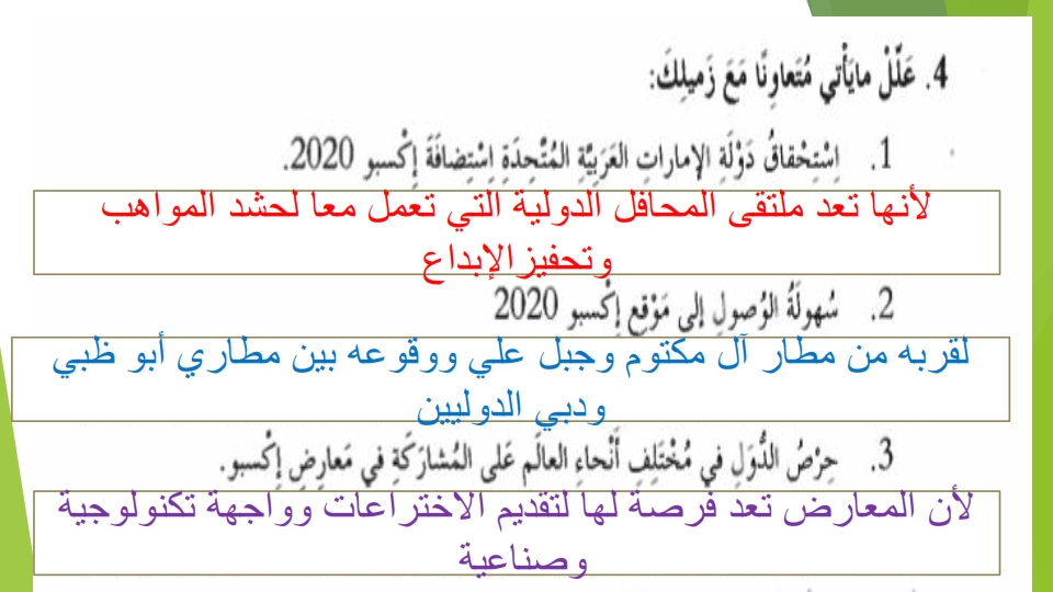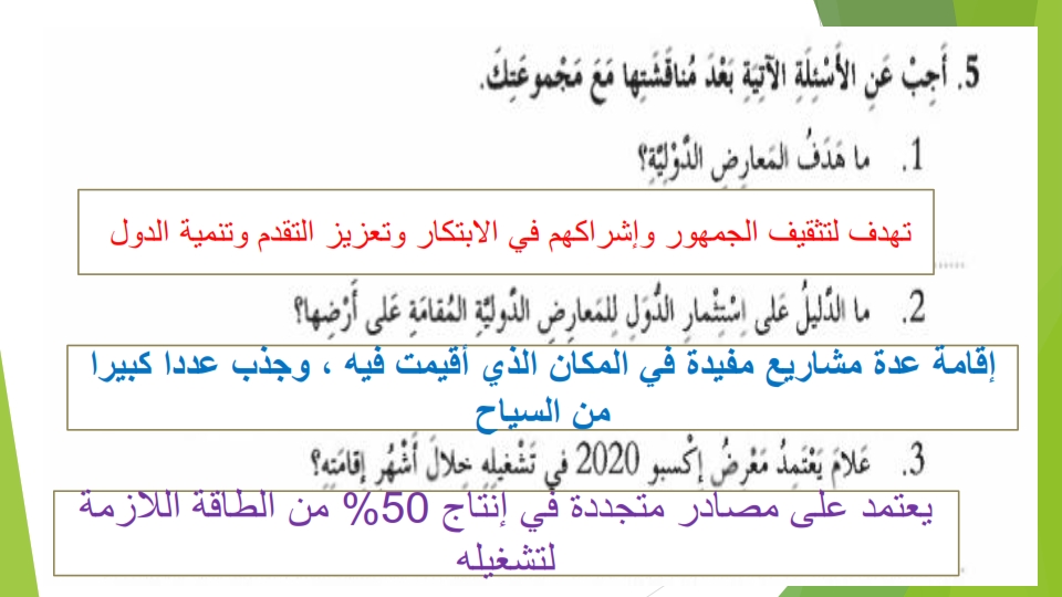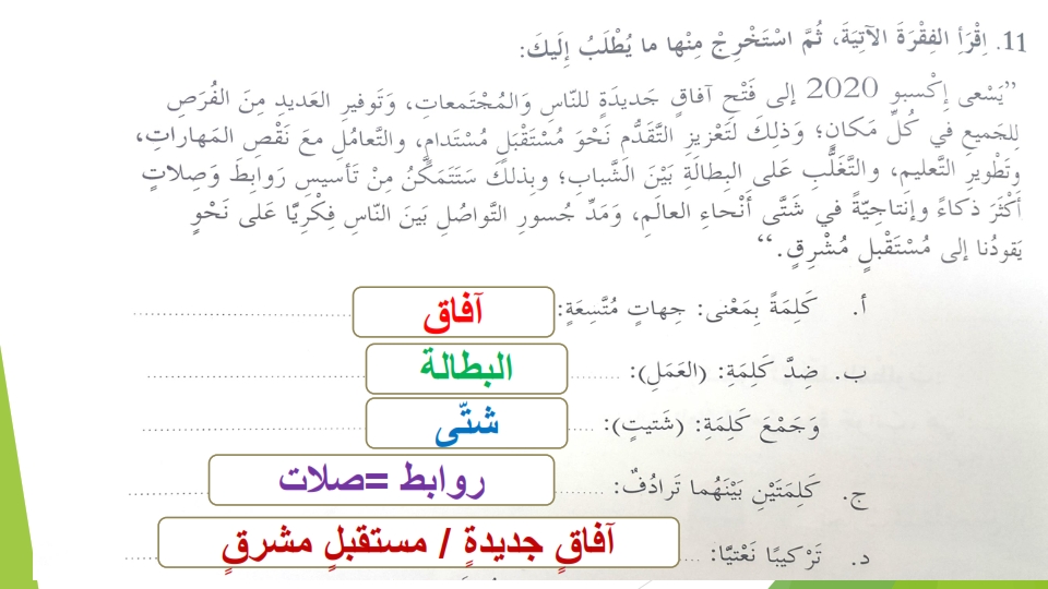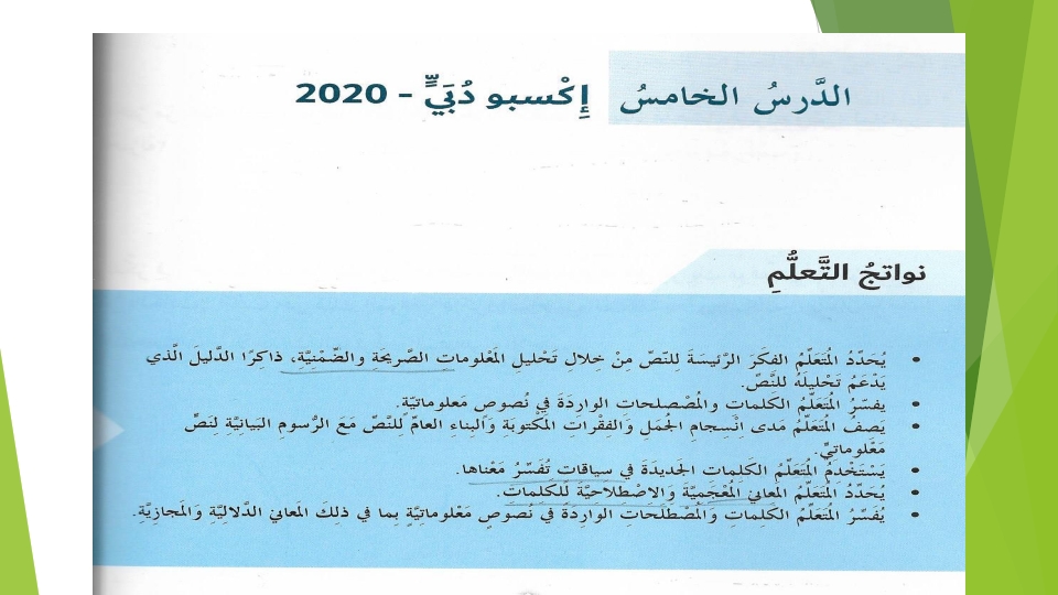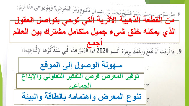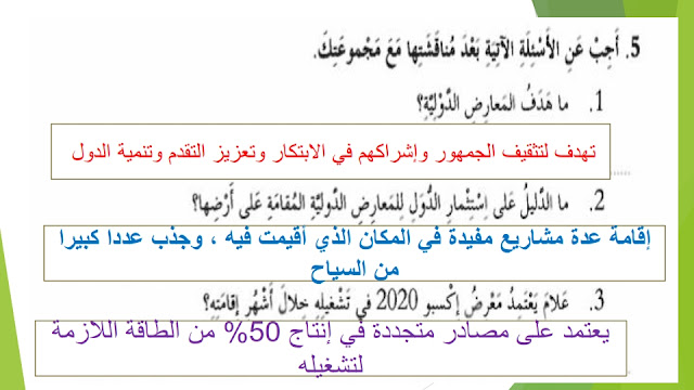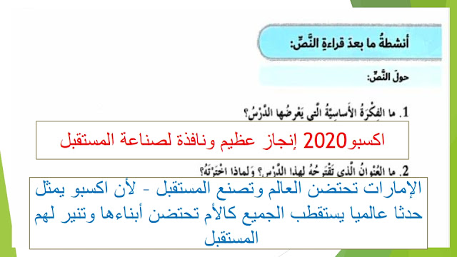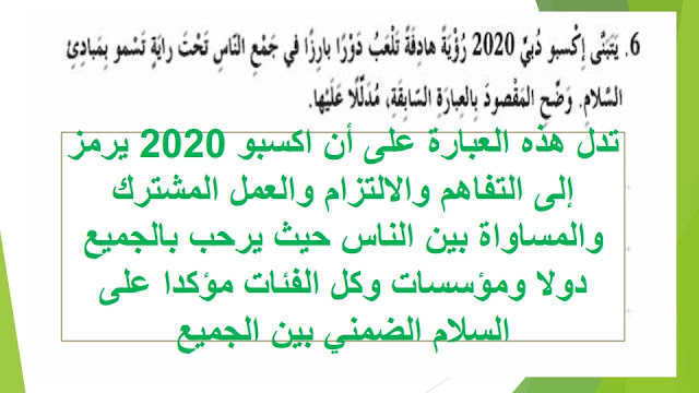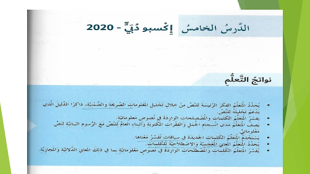 حل درس إكسبو دبي 2020 لمادة اللغة العربية للصف السادس من الفصل الدراسي الاول للمشاهدة والتحميل علي موقع المناهج الاماراتية. معلومات الدرس : الصف السادس مادة اللغة العربية عدد الصفحات : 39 تحميل الملف