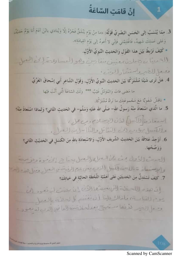 حل درس ان قامت الساعة لمادة اللغة العربية للصف السادس من الفصل الدراسي الثاني ، الاجابات بخط اليد لجميع الاسئلة. معلومات الملف : الصف السادس مادة اللغة العربية