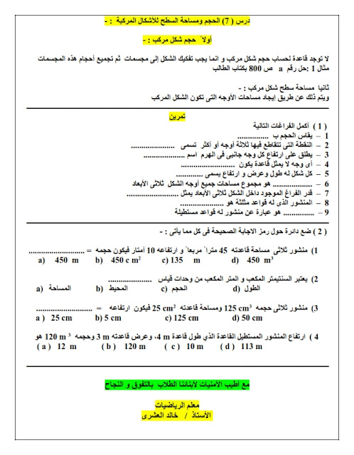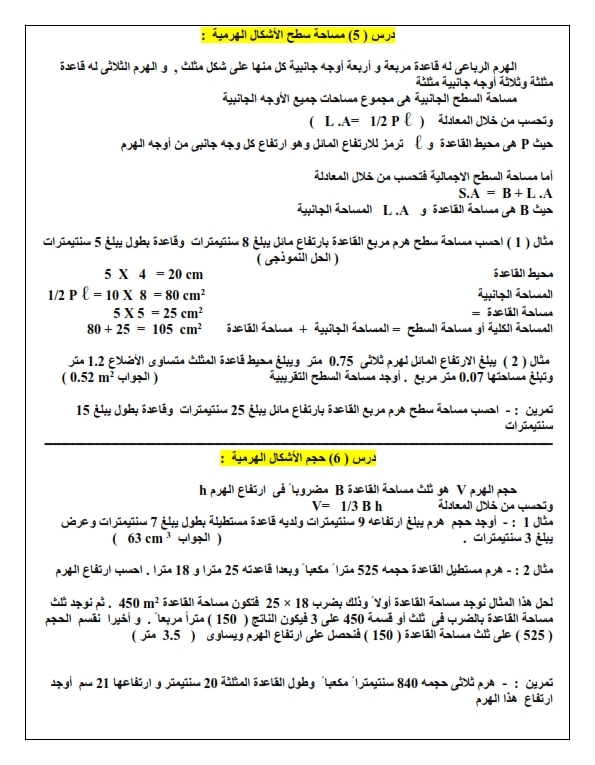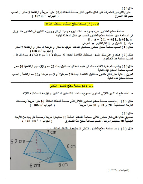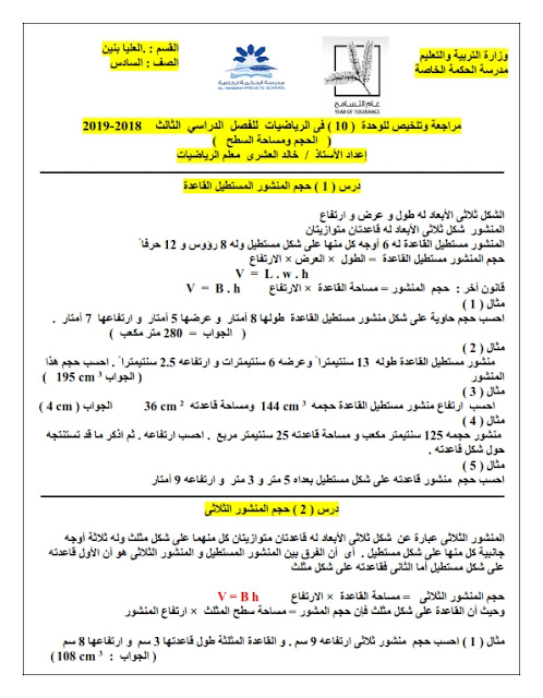ملخص الحجم ومساحة السطح رياضيات للصف السادس الفصل الثالث. عدد الصفحات : 4 صيغة الملف : pdf ملخص الحجم ومساحة السطح لمادة الرياضيات للصف السادس من الفصل الدراسي الثالث. التحميل من هنا