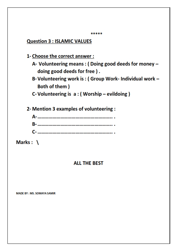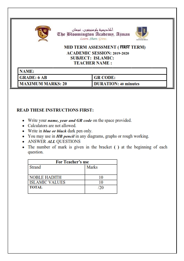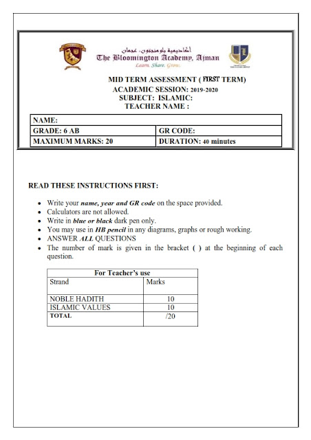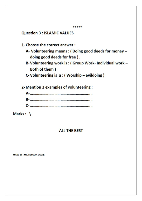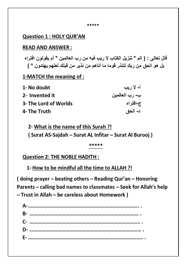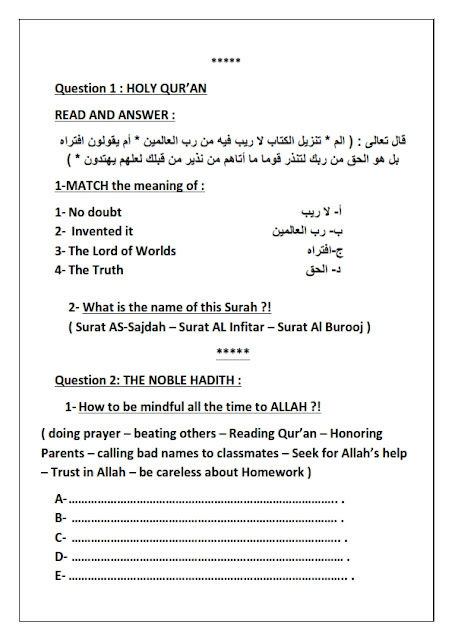 ورقة عمل الاختبار الاول لمادة التربية الاسلامية لغير الناطقين باللغة العربية للصف السادس من الفصل الدراسي الاول 2019-2020. معلومات الملف : الصف السادسمادة التربية الاسلاميةعدد الصفحات 3صيغة الملف : pdf ورقة-عمل-الاختبار-الاولتنزيل