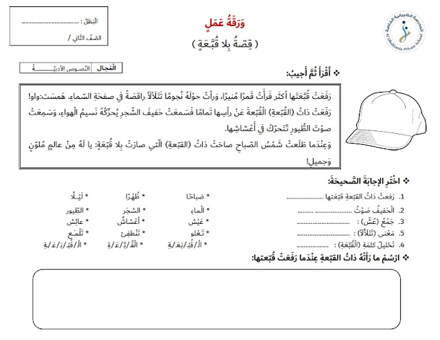 ورقة عمل بلا قبعة لغة عربية للصف الثاني الفصل الثاني 2018-2019 عدد الصفحات : 2 ورقة عمل بلا قبعة للصف الثاني في مادة اللغة العربية للصف الثاني من الفصل الدراسي الثاني. التحميل من هنا