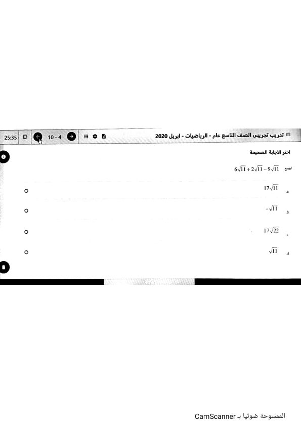 الرئيسية / الصف التاسع / الاختبار التجريبي الاول رياضيات للصف التاسع الفصل الثالث 2019-2020
