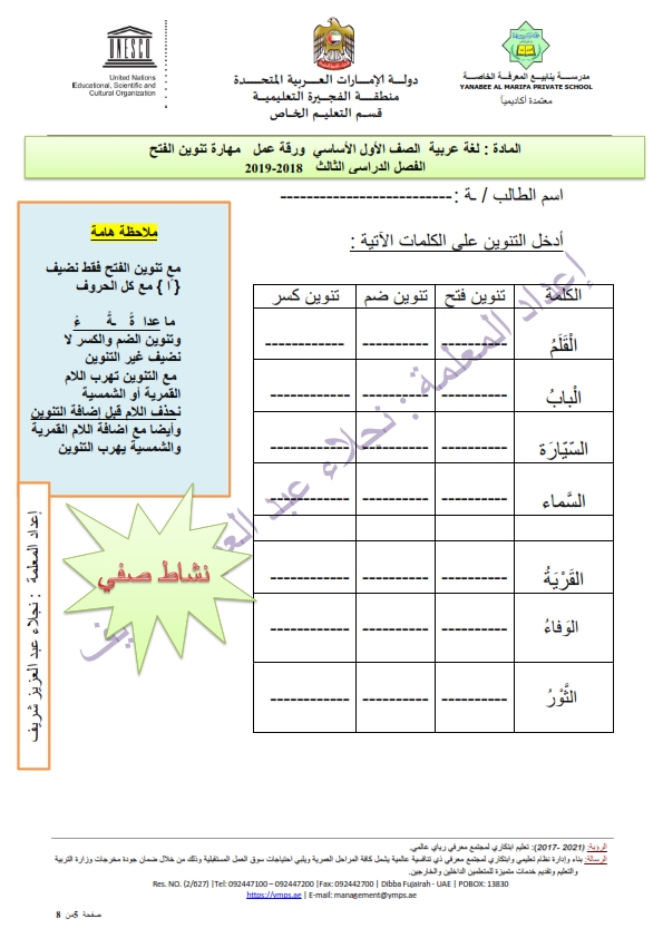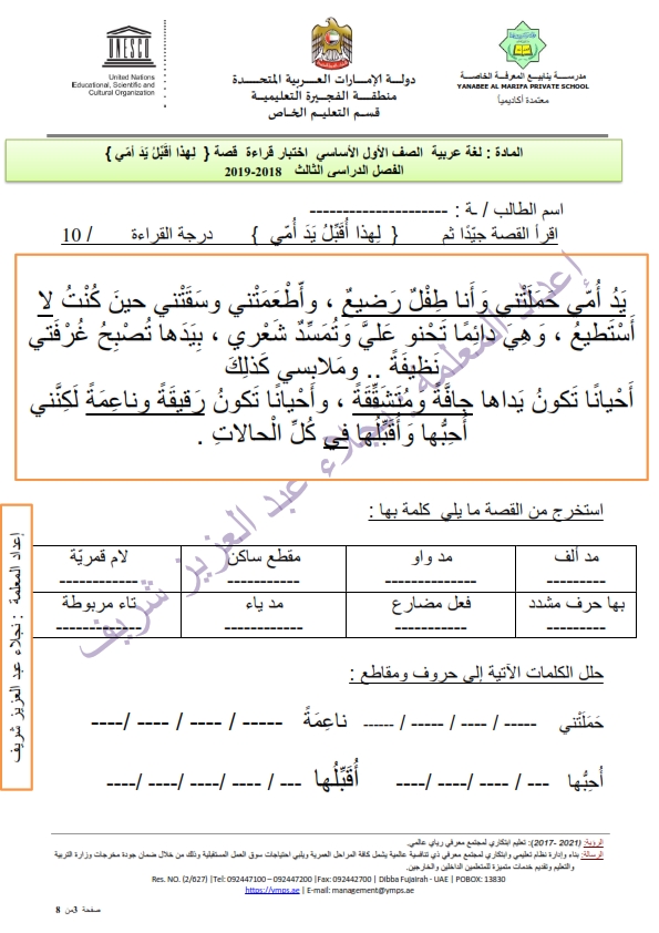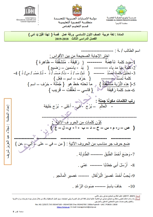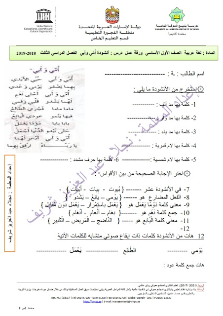 اوراق عمل (أمي) لغة عربية للصف الاول الفصل الثالث عدد الصفحات : 8 صيغة الملف : pdf اوراق عمل أمي لمادة اللغة العربية للصف الاول من الفصل الدراسي الثالث وفق مناهج الامارات. التحميل من هنا