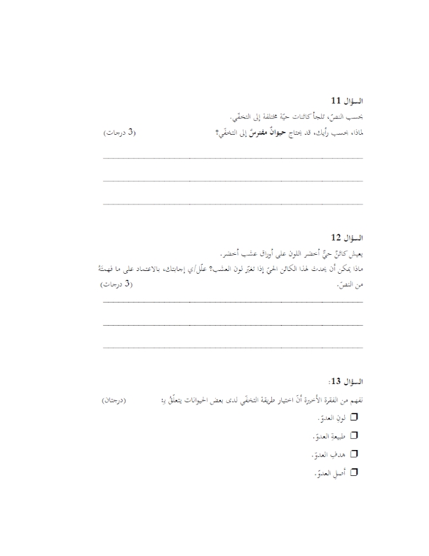 اوراق عمل فهم المقروء لغة عربية للصف السادس الفصل الثالث