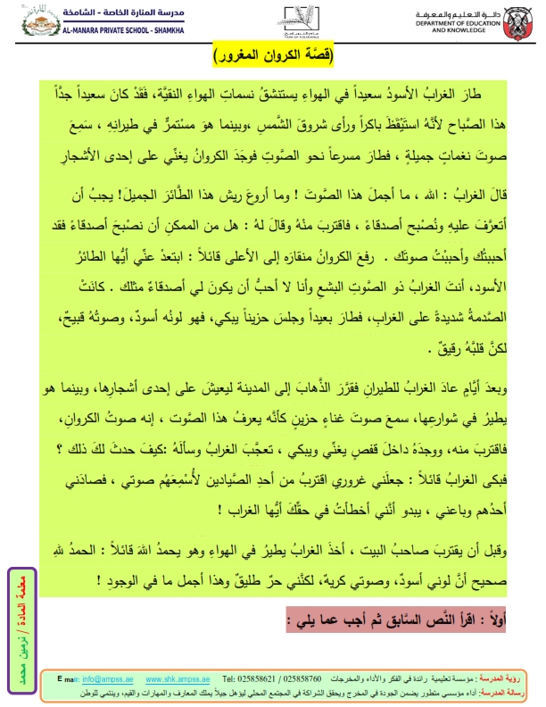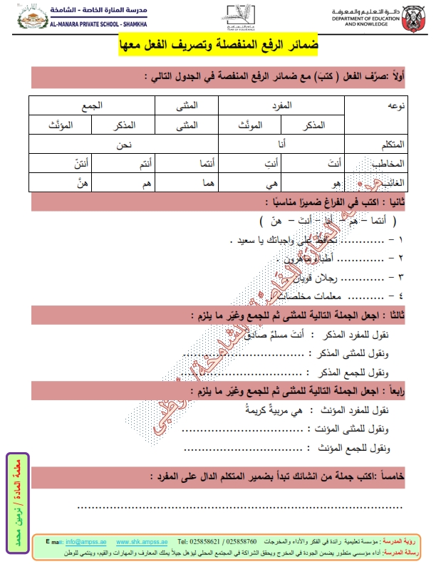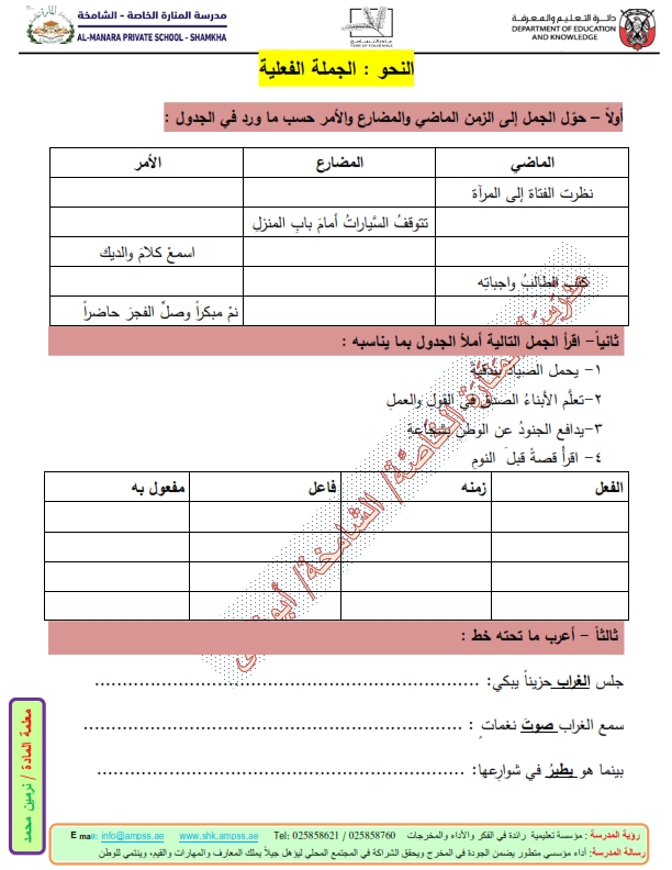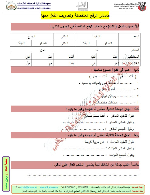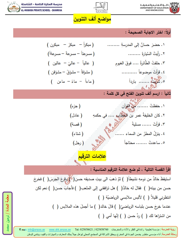 اوراق عمل مراجعة لغة عربية للصف الرابع الفصل الثاني والثالث 2018-2019.9