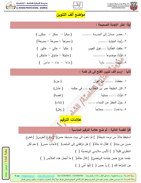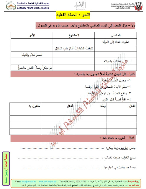اوراق عمل مراجعة لغة عربية للصف الرابع الفصل الثاني والثالث 2018-2019