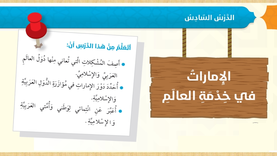 حل درس الامارات في خدمة العالم تربية اسلامية للصف السادس الفصل الاول