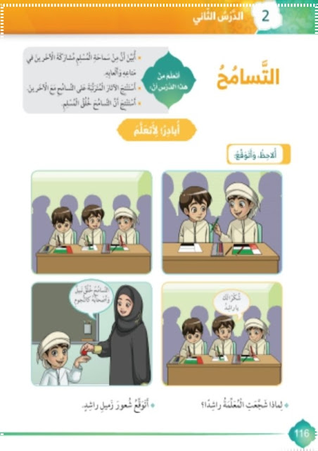 حل درس التسامح لمادة التربية الاسلامية للصف الاول من الفصل الدراسي الثالث ، الملف للمشاهدة والتحميل علي موقع المناهج الاماراتية.