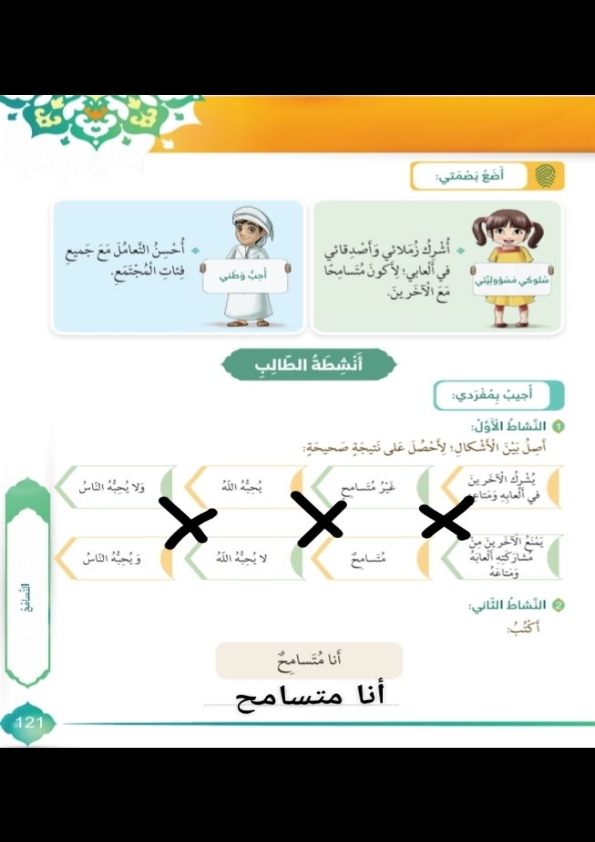 حل درس التسامح تربية اسلامية للصف الاول الفصل الثالث