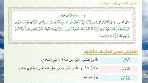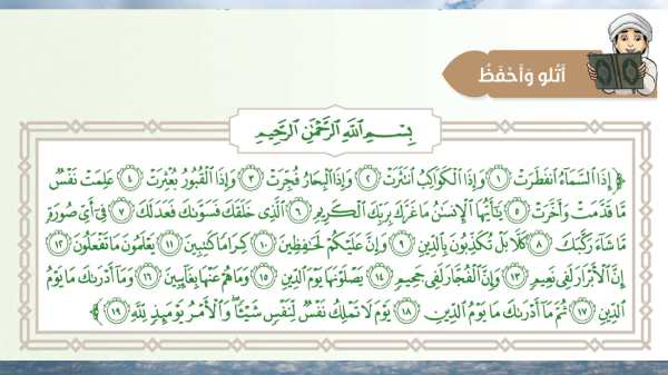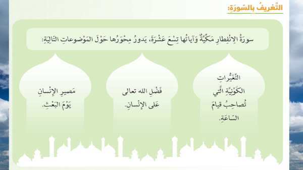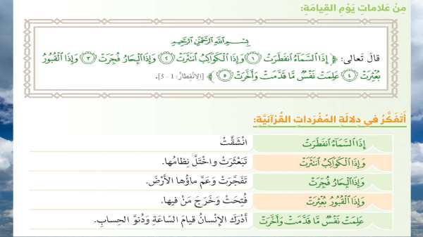 حل درس سورة الانفطار لمادة التربية الاسلامية للصف الخامس من الفصل الدراسي الاول للعام الدراسي 2019/2020م. الملف للمشاهدة : تحميل الملف