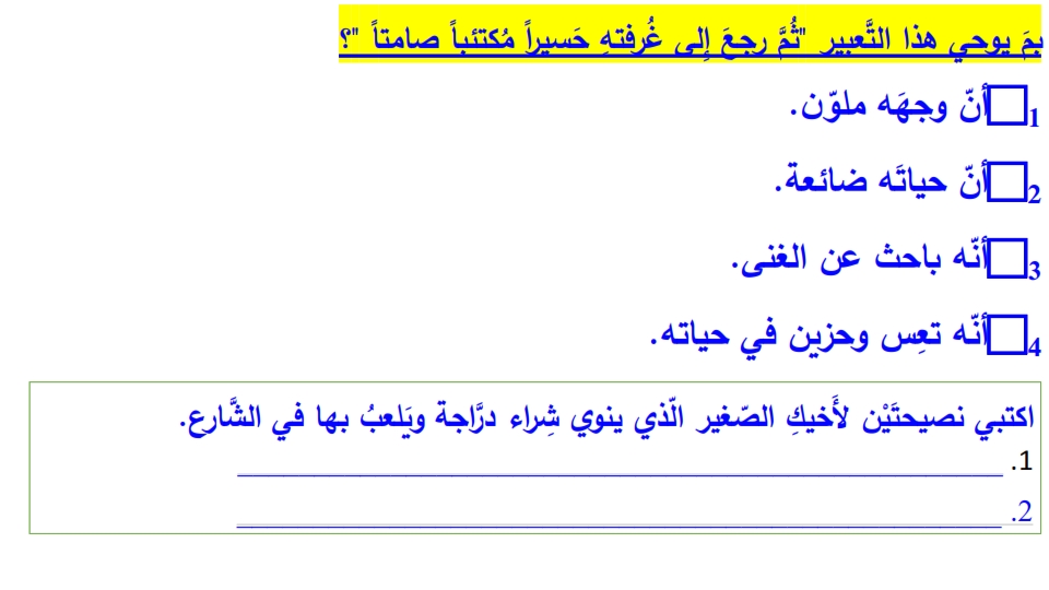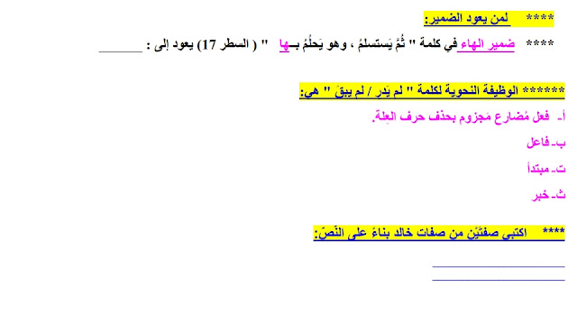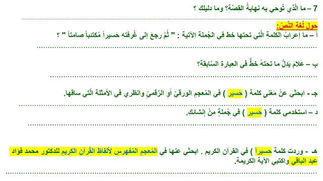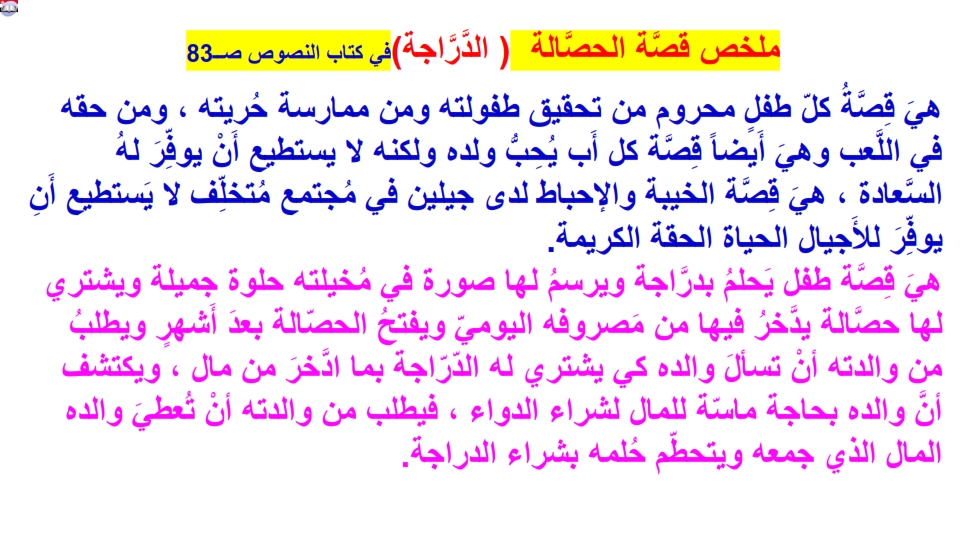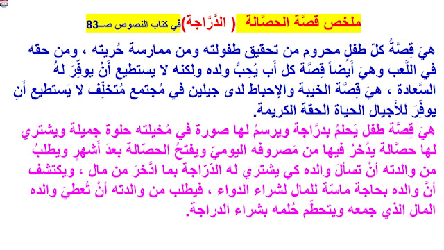 درس الحصالة لغة عربية للصف التاسع الفصل الثالث مع الحل