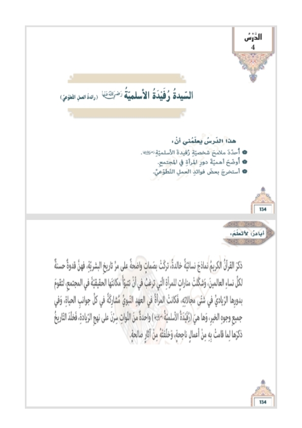 درس السيدة رفيدة الأسلمية رضي الله عنها تربية اسلامية للصف السابع الفصل الثالث