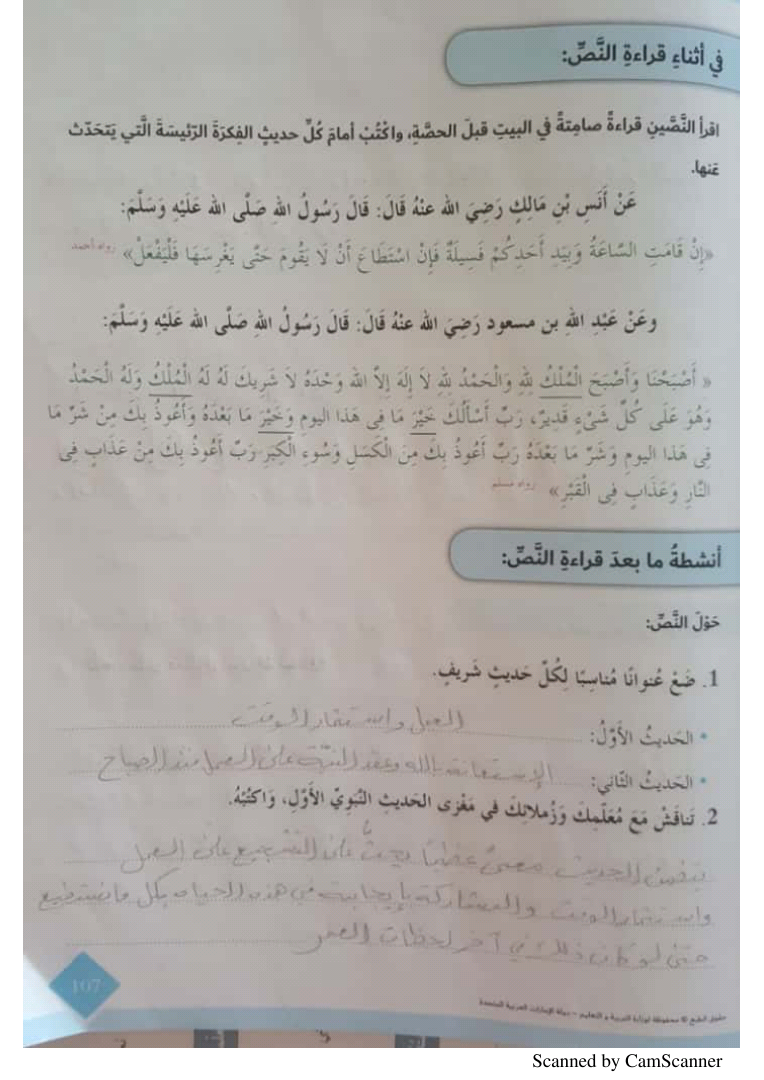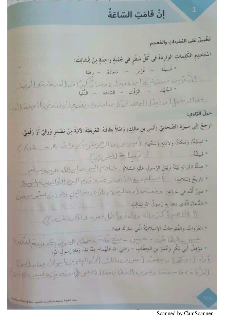 حل درس ان قامت الساعة لمادة اللغة العربية للصف السادس من الفصل الدراسي الثاني ، الاجابات بخط اليد لجميع الاسئلة. معلومات الملف : الصف السادس مادة اللغة العربية