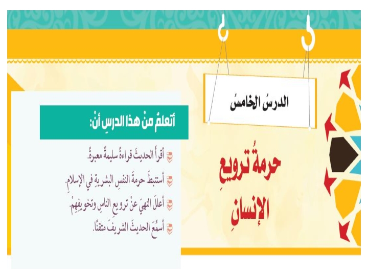 درس حرمة ترويع الانسان تربية اسلامية للصف الثامن الفصل الثالث مع الحل