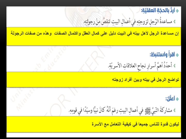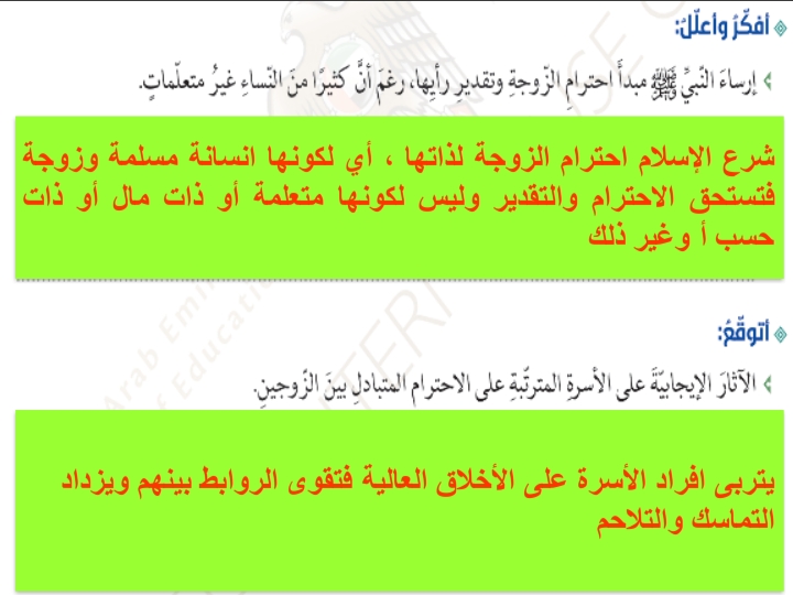 درس رعاية الرسول صلى الله عليه وسلم لأهله تربية اسلامية للصف العاشر مع الحل