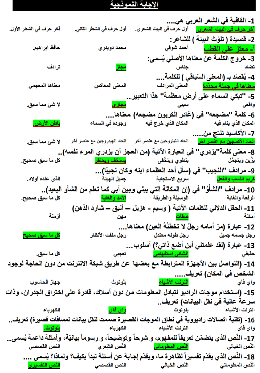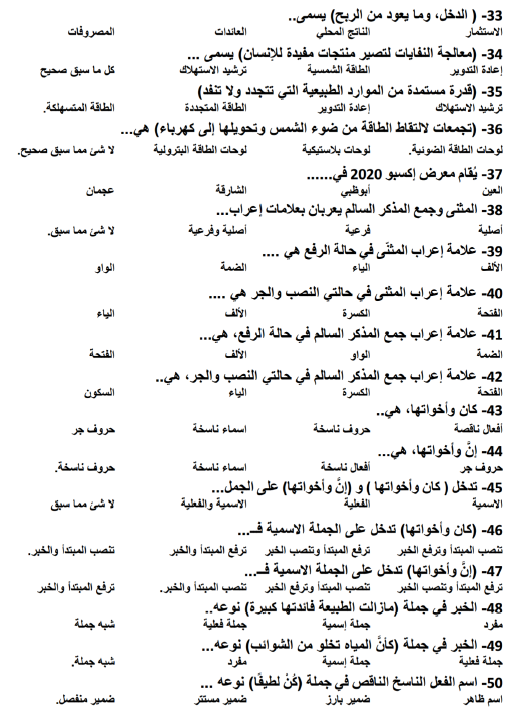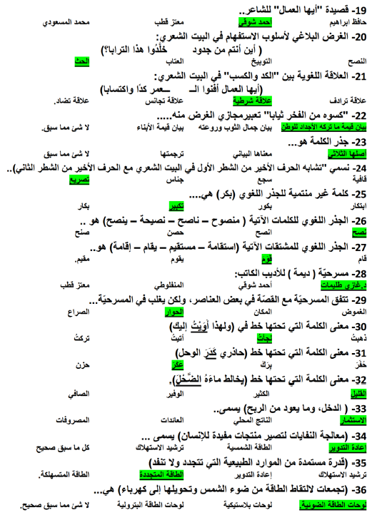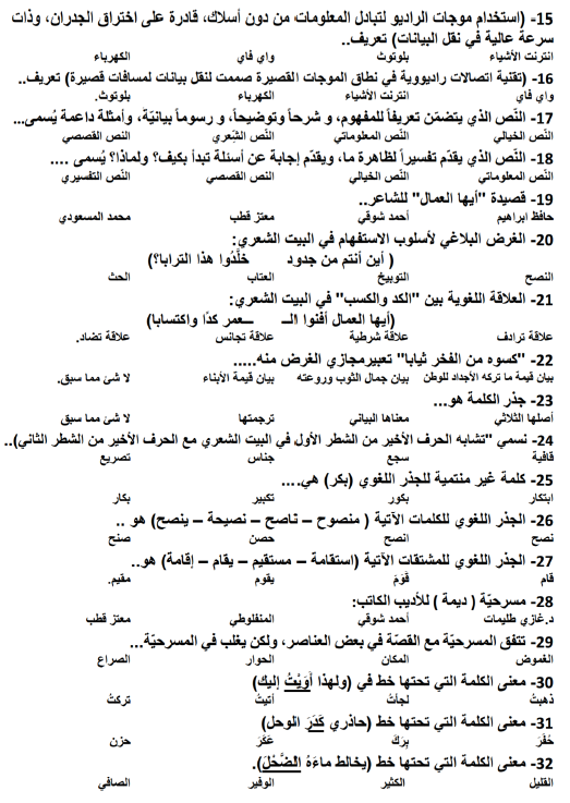 مراجعة للامتحان لغة عربية للصف السادس الفصل الدراسي الثاني 2018-2019