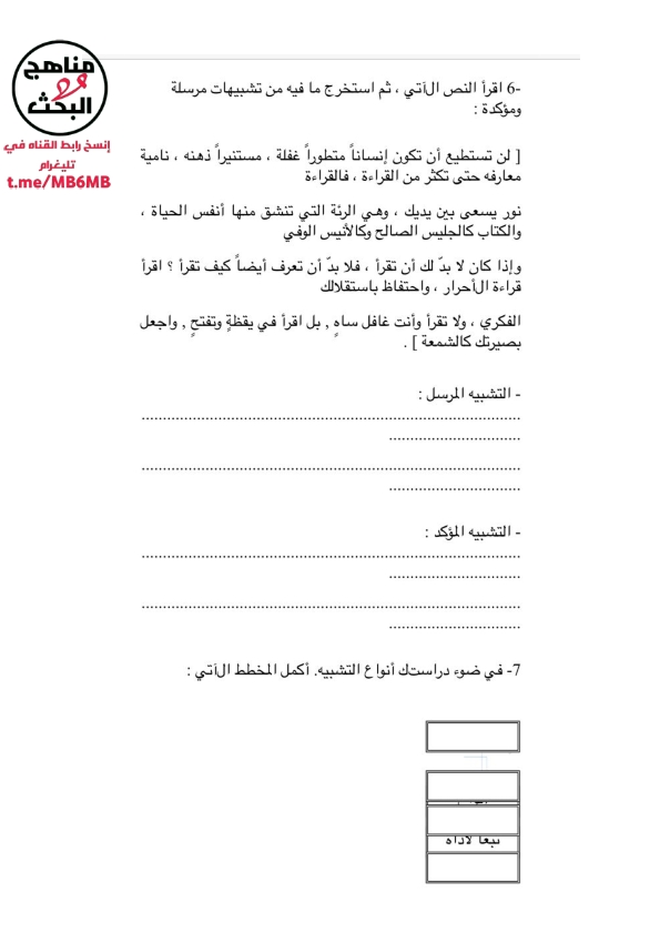 ورقة عمل التشبيه المرسل والتشبيه المؤكد لغة عربية للصف الثامن الفصل الثاني اوراق عمل التنشبيه المرسل والتشبيه المؤكد لغة عربية للصف الثامن من الفصل الدراسي الثاني. الملف يحتوي علي 3 أوراق. التحميل من هنا