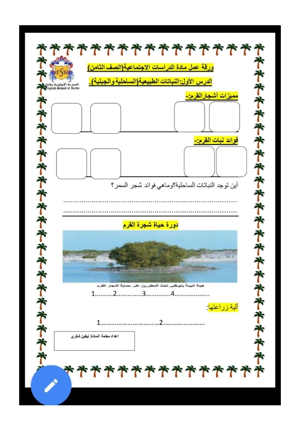 ورقة عمل النباتات الطبيعية الساحلية والجبلية للصف الثامن دراسات اجتماعية الفصل الثالث ، الملف للمشاهدة والتحميل علي موقع المناهج الاماراتية.
